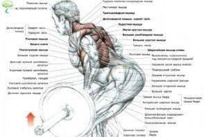- приведения руки к туловищу (круглая мышца спины);