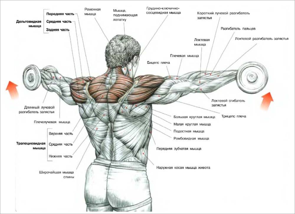 Передняя дельта забирает большую часть нагрузки у средней, во время жимов штанги из-за головы, а трапеция — во время выполнения упражнений на заднюю дельту со штангой и гантелями. Особенно, когда вес отягощения подобран неадекватно.