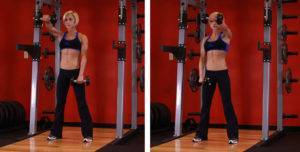 - Гантели рекомендуется брать более легкие, чем обычно.