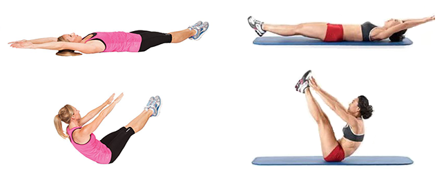 Еще одним потенциально “опасным” для поясничного отдела позвоночника является упражнение, именуемое “складной нож”, когда с поверхности пола происходит одновременный подъем ног и туловища. В процессе выполнения напряжение испытывают только мышцы живота, а вот поясничные ткани находятся в совершенно расслабленном состоянии, в следствии чего вся нагрузка приходится на позвоночные связки, которые со временем начинают давать о себе болезненными ощущениями.