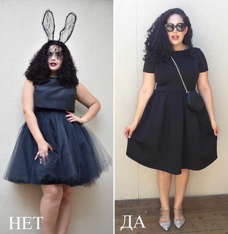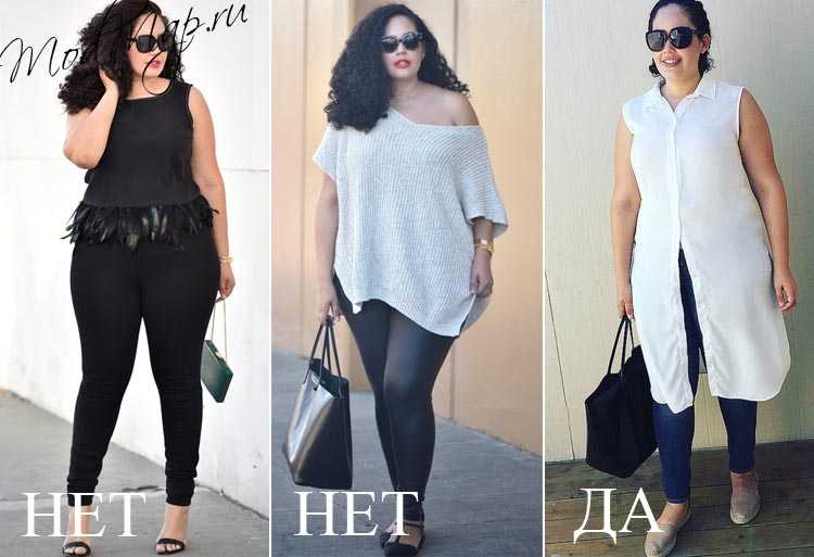 Теперь давайте на практике разберем как скрыть полноту с помощью модной одежды. Что можно носить, а чего лучше избегать.