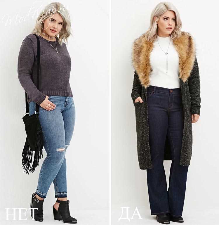 10. И последний пример, как носить джинсы полным. Джинсы скинни очень полнят фигуру (их могут носить только стройные девушки). Вам подойдут классические прямые джинсы с длинным кардиганом.
