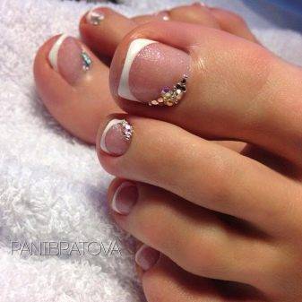 Дизайн френч на ногах со стразами пользуется большой популярностью у женщин: