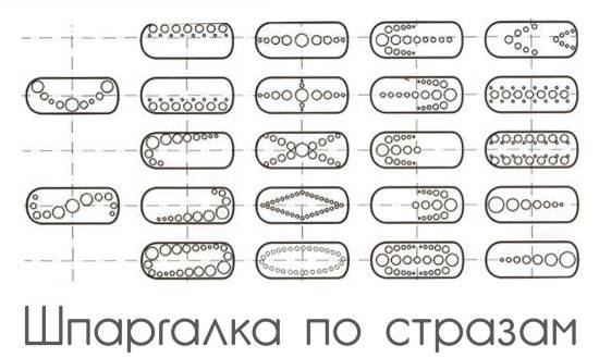 - На начальном этапе необходимо наметить место, где будут располагаться стразы.