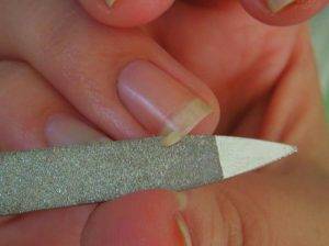 - Неправильный уход. Помните, что ногтям вредят металлические пилочки. Самый лучший вариант – стекленный или бумажный материал. Кроме того нужно правильно подпиливать ногти. Старайтесь запиливать их в одном направлении – от зоны отрастания до свободного края (именно разнонаправленное движение пилочки является основной причиной того, что ногти ломаются вдоль ногтевой пластины). К расслоению и ломкости ногтей, как на ногах, так и на руках может привести травматизация кутикулы. Не увлекайтесь ее обрезанием. Данную процедуру следует делать 1 раз в три недели, в остальное время достаточно слегка отодвинуть ее с помощью апельсиновой палочки.