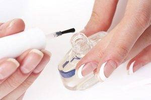 Использование лечебных лаков. Они продаются во всех аптеках, и вы можете самостоятельно их применять. Существует целая серия подобных лаков, вам нужно выбрать укрепляющий вариант, предотвращающий расслоение ногтевой пластины.
