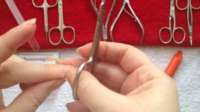 Манипуляции лучше всего выполнять маникюрными изогнутыми ножничками. Перед тем как приступить к процедуре, предварительно рекомендуется продезинфицировать с помощью любого антисептика все маникюрные инструменты или термически их обработать.