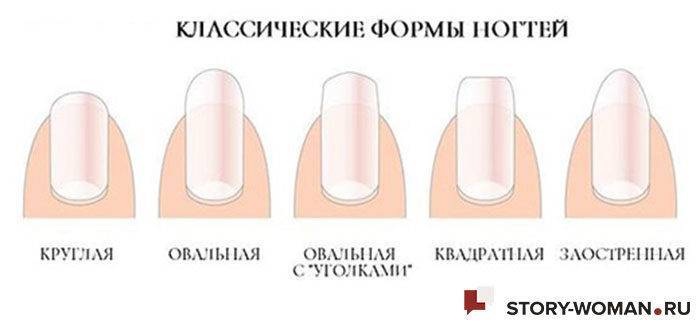 - Определитесь с желаемой формой и длиной ногтей. Форма может быть абсолютно любой. Наиболее удобными считаются немного закругленные ногти, верхний край которых повторяет форму лунки.