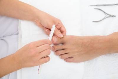 - Распарьте ноги в теплой воде до размягчения ногтевой пластины.