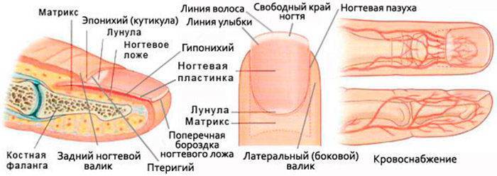 У каждого человека своя форма ногтей, но строение ногтевой пластины у всех одинаковое. Это: