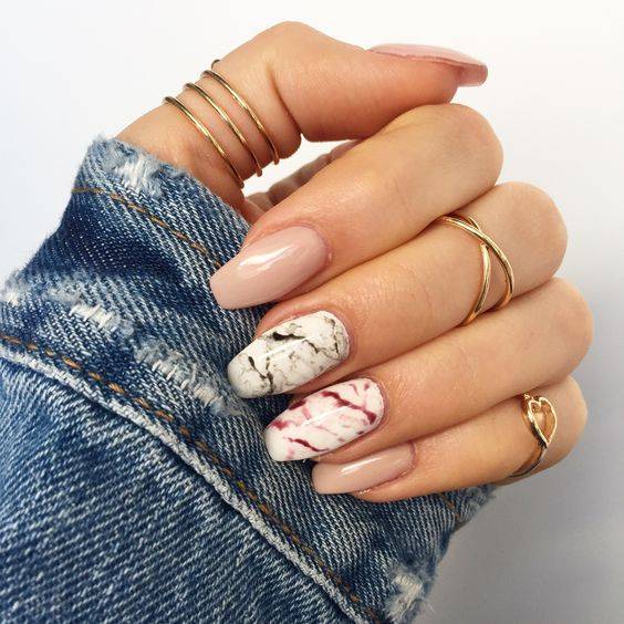 В основе техники – смешении разных тонов лака в воде для получения разводов.