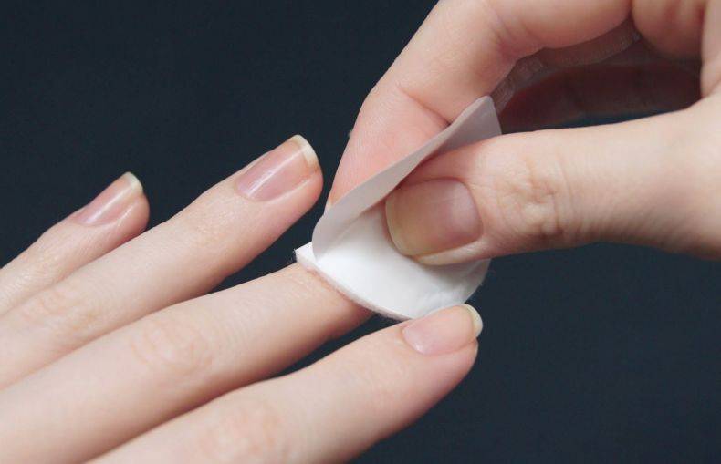 - Пренебрежение к нанесению крема вокруг ногтя приводит к повышению риска получить ожог. Материал с ацетоном должен быть маленького размера, чтобы только покрывать ноготок.