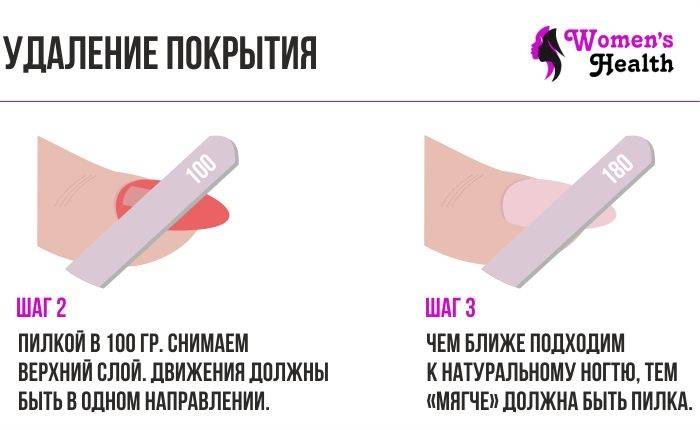 Не следует просто сдирать покрытие без предварительной подготовки. Полигель без спиливания или гель-лак без размягчения так просто не снять.