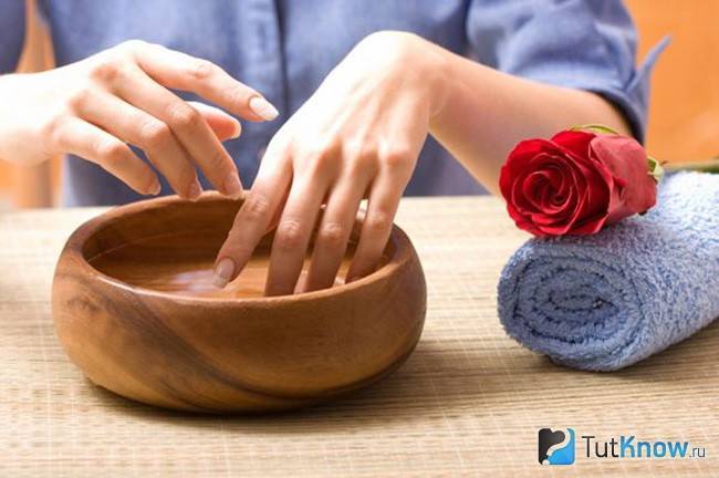 . Подойдет только в том случае, если не повреждена кожа на руках. Рекомендуется применять яблочный уксус. Если его нет, можно использовать и обычный столовый 9%-й. Вещество (1 ч. л.) добавляют в теплую воду (1 ст.) и держат руки в этой ванночке около 5 минут. При неприятном ощущении жжения процедуру нужно прекратить и хорошо помыть руки водой с мылом. - Сода