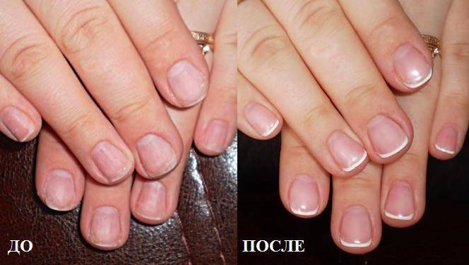 После такой манипуляции ноготки становятся гладкими и крепкими, то есть можно говорить не только об укреплении, но и выравнивании ногтевой пластины.