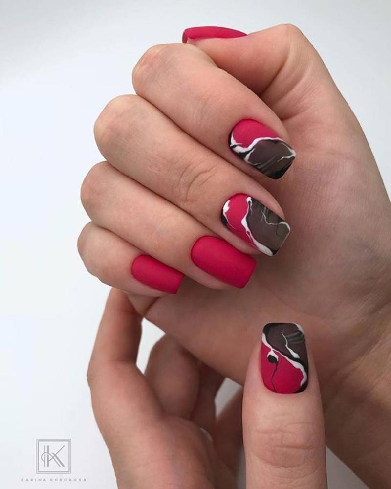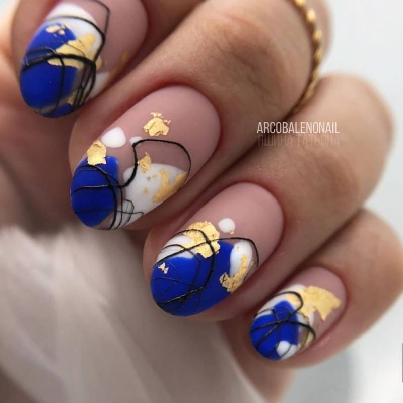 В моде красивый маникюр с узором в абстрактной тематике, который сделает ваш образ интересным и необычным.