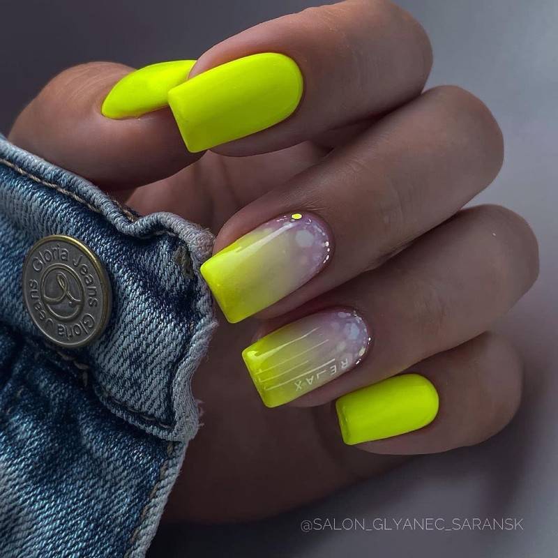 Яркий стиль добавит привлекательности. Здесь стоит отдать предпочтение насыщенным и ярким оттенкам, но выразить их в монохроматической схеме. Так ноготки выглядят довольно броско, но подходят для повседневной носки.