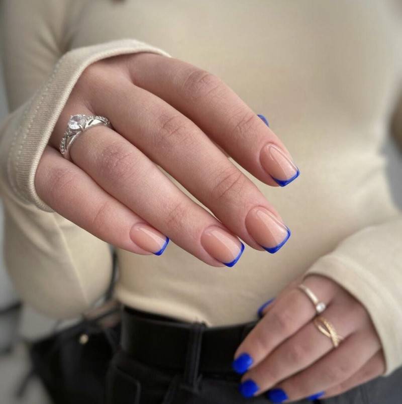 Выполняя маникюр на короткие ногти 2022 можно в смелых как ярких, так и темных тонах, дополнительно комбинируя френч с металлизированным покрытием, золотом, серебром («втирка»). В этом году актуальны плавные закругления в оформлении ногтевой пластины, а потому каждое дизайнерское решение будет смотреться естественно, плавно и изысканно.