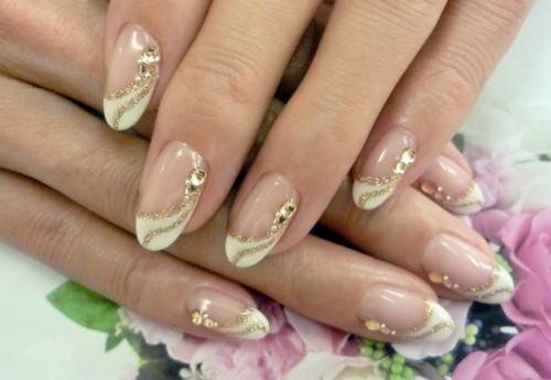 Для преображения простого маникюра в праздничный модный нейл-арт понадобиться блестящий декор – блестки, стразы и маникюрная пудра. Обильное число блестящих элементов нейл-дизайнеры советуют применять в осенне-зимнем маникюре. Весной и летом множество блестящих дополнений нужно минимизировать. Без фанатизма нужно украшать короткие ноготки – стразы и камешки будут расширять и сокращать визуально ногтевую пластину, тогда надо использовать несколько (до 3 штук) мелких деталей декора.