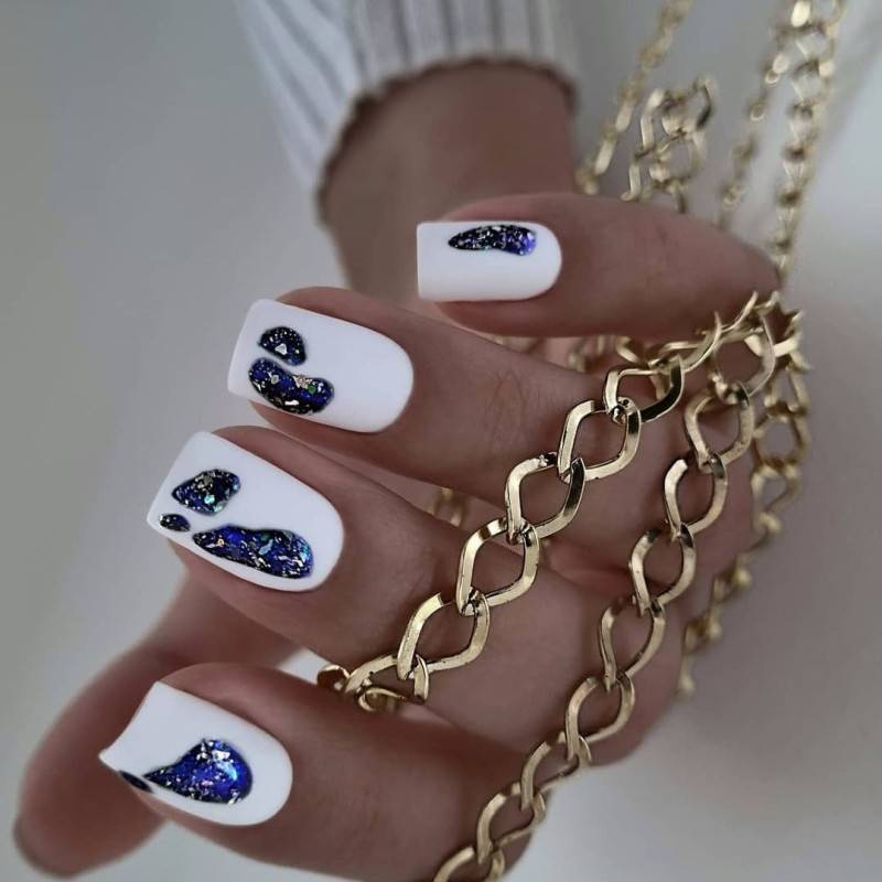 Новогодний маникюр 2021: новинка, модная тенденция – стеклянный маникюр (“битое стекло”), фото