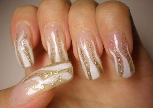 Как в теплые времена года, так и в холодные дни, стильно будет смотреться маникюр с узором из завитушек, плавных линий, полосок разной толщины, который не требует четкости рисунка, но все равно выглядит очень оригинально.
