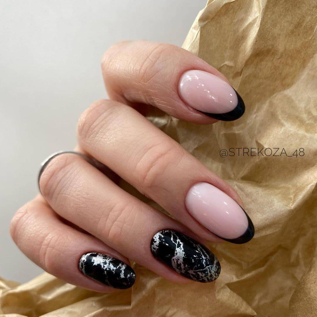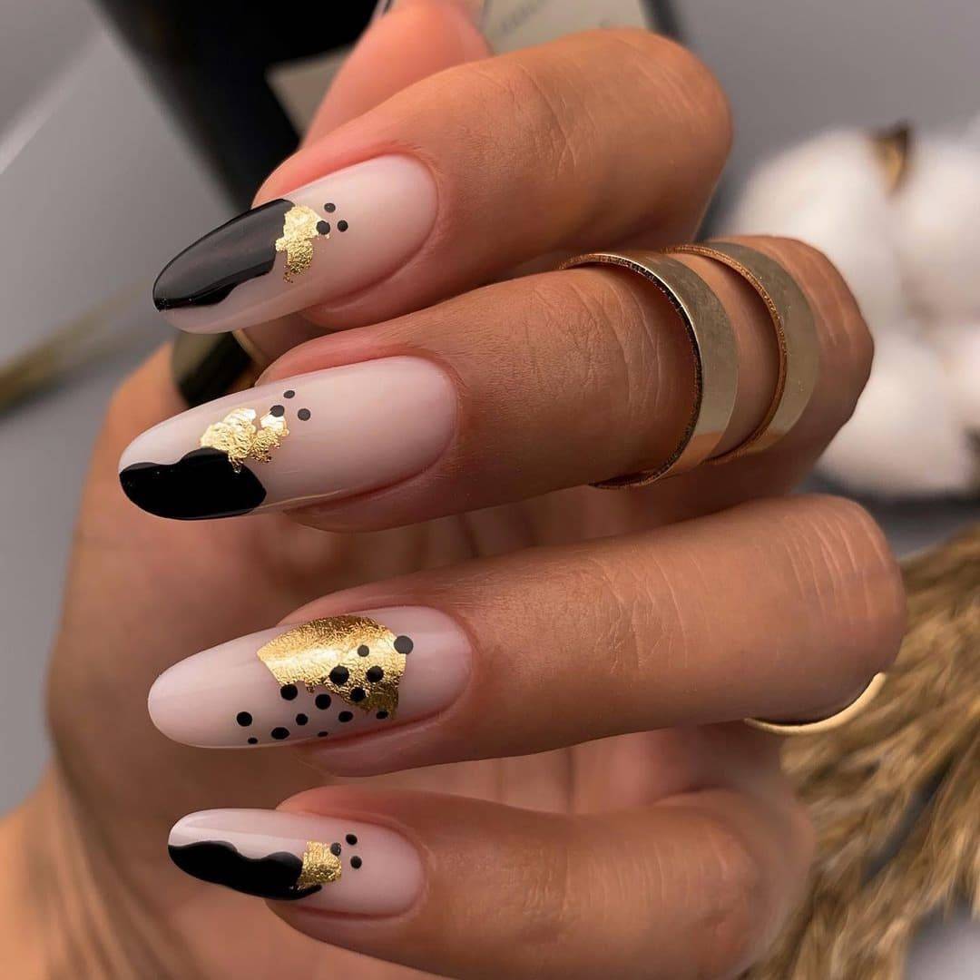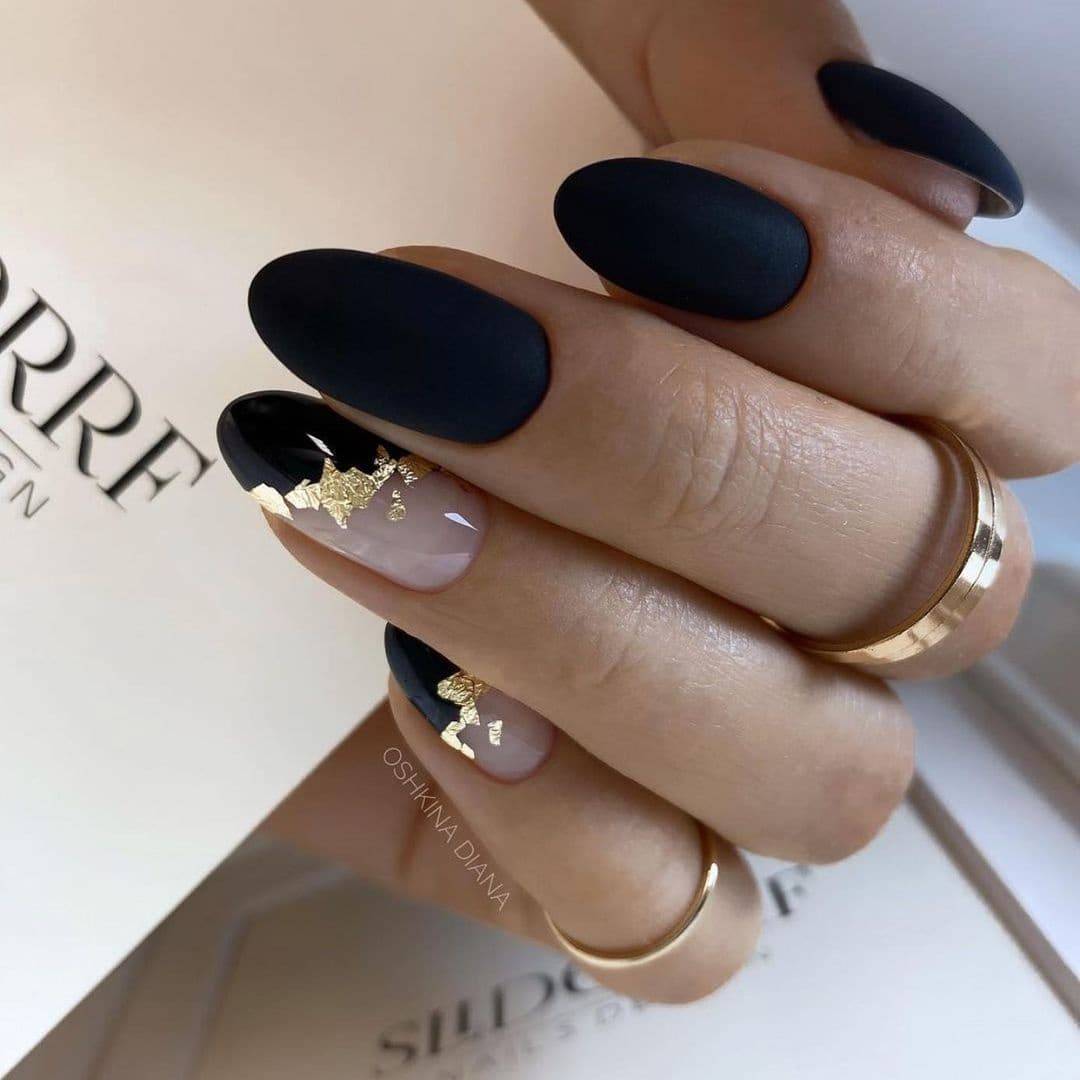Новогодний маникюр 2021: темный дизайн ногтей с золотом, фото