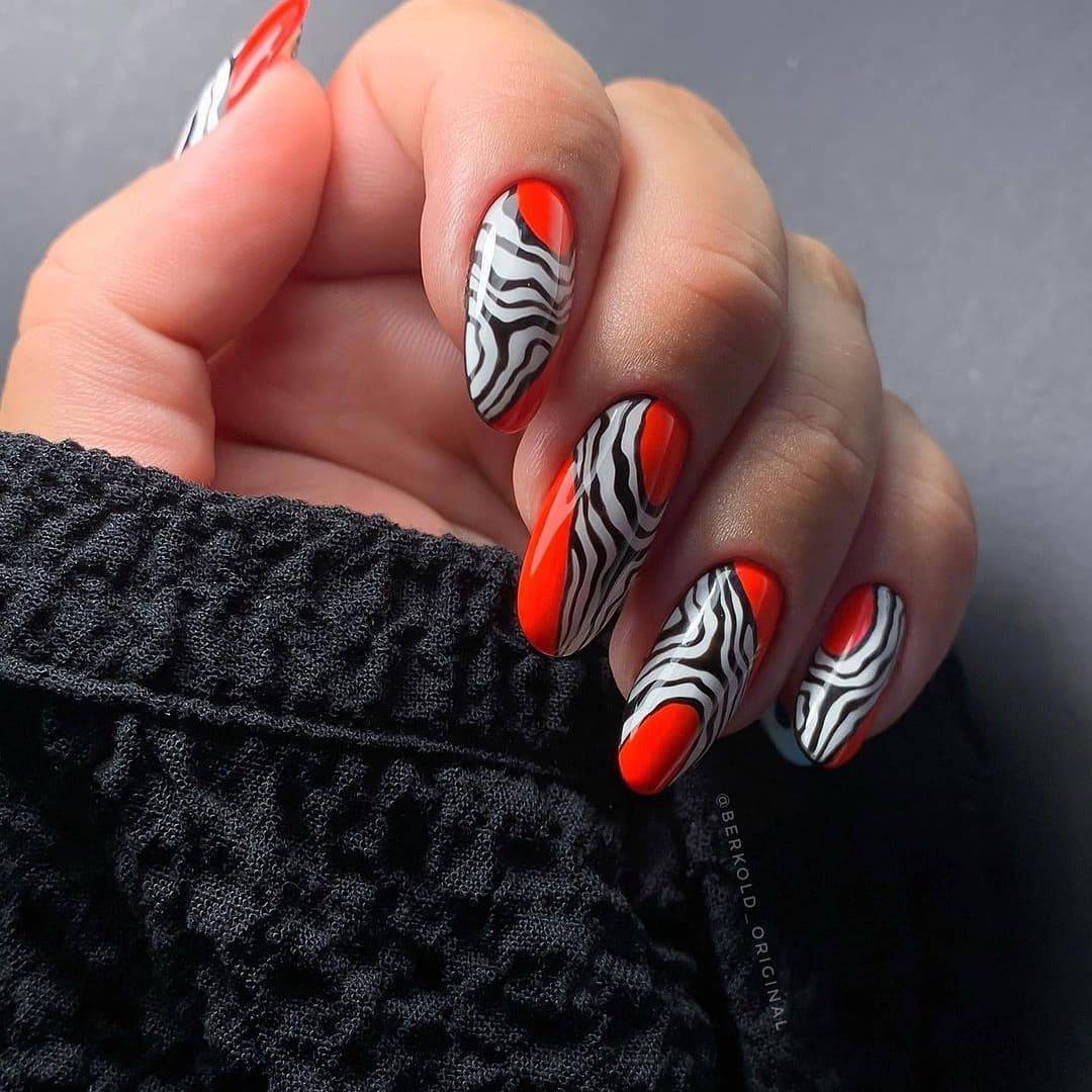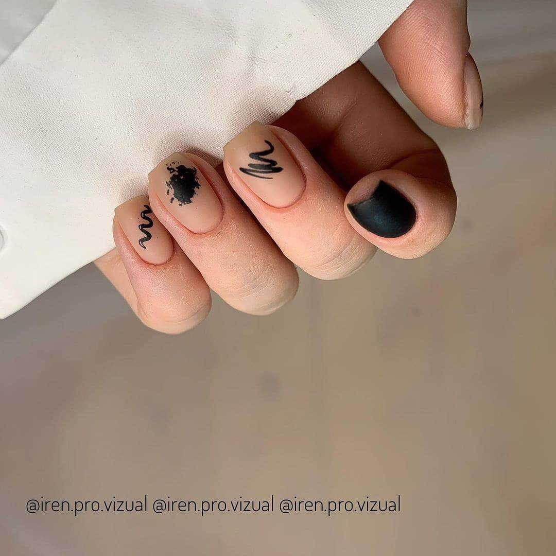 В моде красивый маникюр с узором в абстрактной тематике, который сделает ваш образ интересным и необычным.