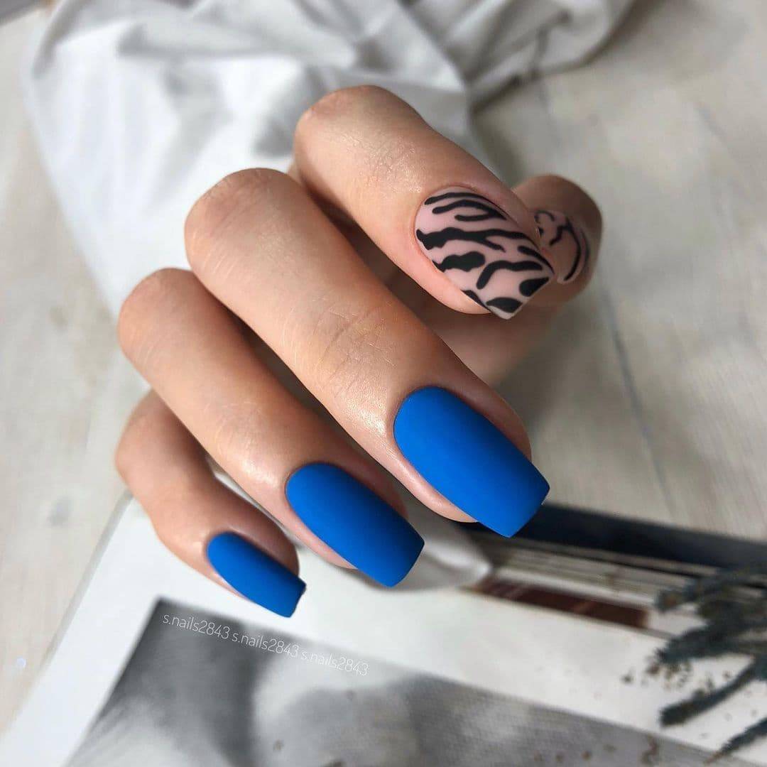 Новогодний маникюр 2021, модные тенденции – маникюр в синих тонах и дизайн ногтей с имитацией битого стекла, фото