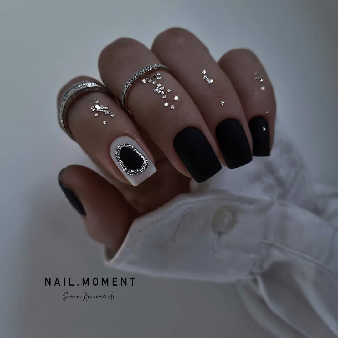 Шикарный новогодний маникюр 2021 черный с бархатным песком, фото