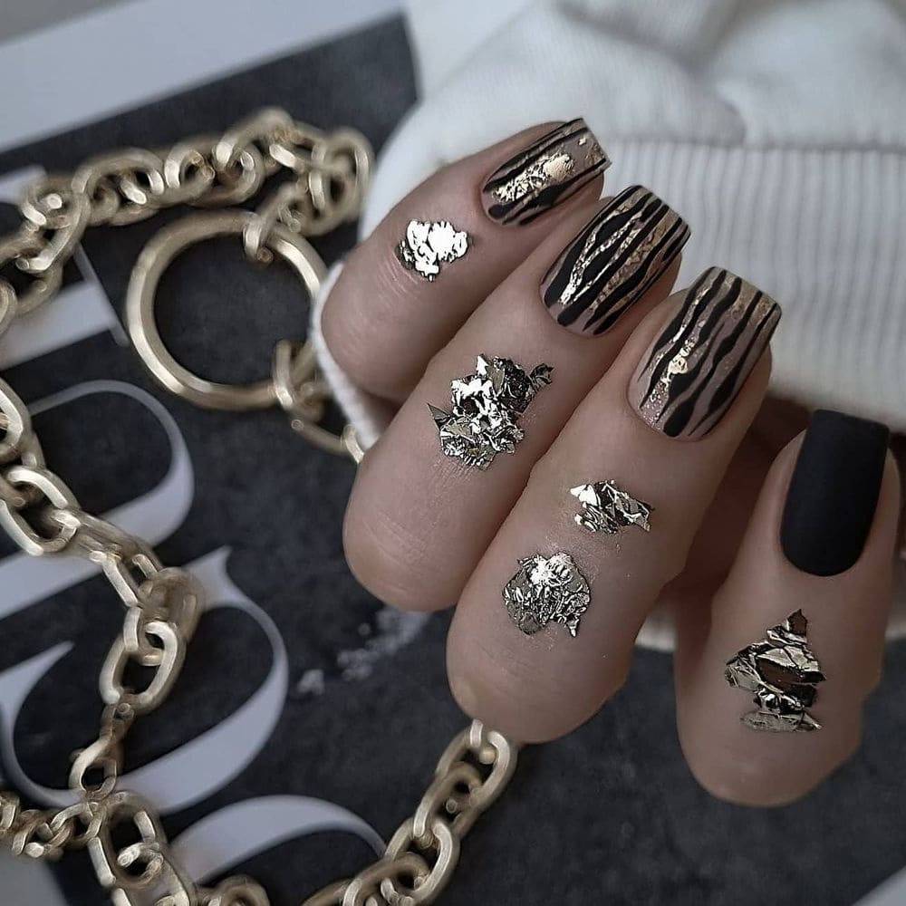 Красивый новогодний маникюр 2021: идеи черного и золотого маникюра, фото