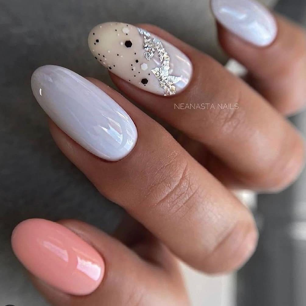 Новогодний маникюр 2021: новинка, модная тенденция – стеклянный маникюр (“битое стекло”), фото