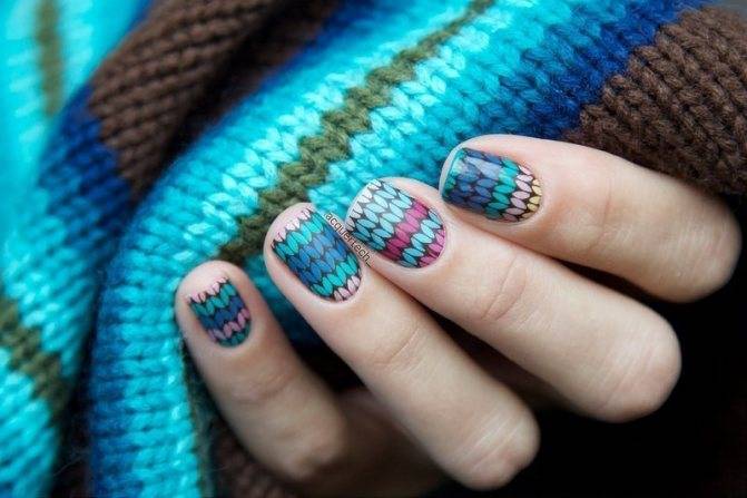 Дизайн ногтей свитер можно делать и без песка. Поэтому, если вам не удалось его купить, то расстраиваться не нужно. Сейчас объясним поэтапно, как сделать вязаный маникюр, имея под рукой акриловую краску: