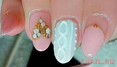 Отличный вариант рисунка и маникюра – нежный розовый с белым.