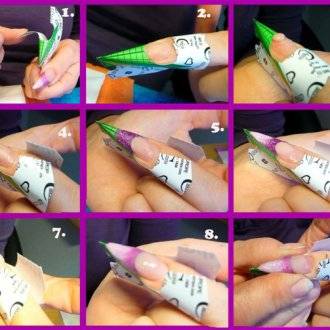 - Неправильное расположение формы для наращивания – этот этап является основным, поскольку от него зависит весь вид маникюра.
