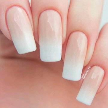 - Французский градиентный. При такой технике на край ногтя наносится белый цвет, который будет переходить в прозрачный по направлению к нижней части ногтя. Такой вариант будет отлично смотреться на длинных и тонких ноготках.