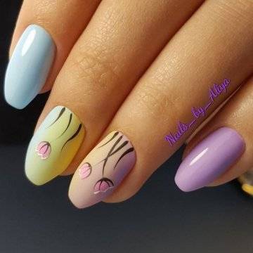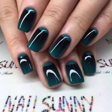 Такой маникюр будет выглядеть грязным. Для способа с гулкой лучше выбирать близкие по тону оттенки пигмента.