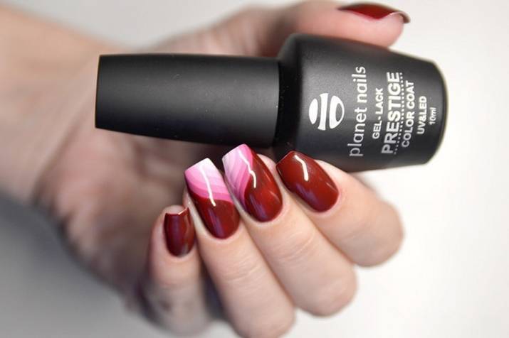 Обязательно необходимо покрытие — обычный или гель-лак. Под них нужна будет база, а поверх — топ. Естественно, покрытия берут нескольких цветов или оттенков одного колера, в зависимости от дизайнерской идеи.