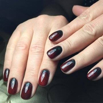 Маникюр на коротких ногтях не всегда выглядит гармонично, особенно, если он выполнен в темных, мрачных тонах. Но градиентная техника помогает избавить покрытие от этого недостатка. Создавать дизайн стоит с вертикальными переходами – так можно визуально вытянуть длину ногтевой пластины.
