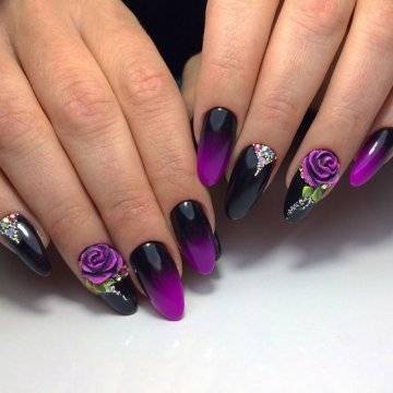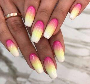 Многие дамы предпочитают именно данную технологию, потому что она позволяет использовать сразу несколько цветов. Такие ноготки будут выглядеть всегда модно, креативно и удачно дополнять стильный образ любой модницы. При этом стоит отметить, что граница между цветами плавная, а не ярко выраженная. Оттенки проникают друг в друга, дополняя предыдущий цвет.