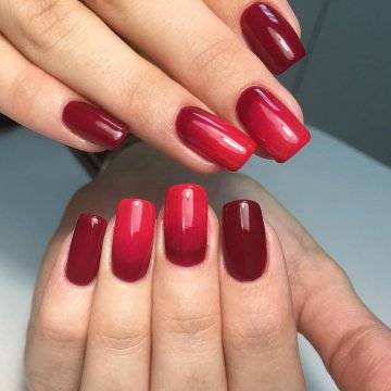 • классический градиент – двухфазный цветовой окрас ногтей лаком (шеллаком, гель-лаком) в самых разнообразных его цветовых наборах: самое удачное сочетание – это переход от светлого тона к более тёмному, насыщенному, но в одной цветовой категории. Классика никогда не стареет, поэтому этот простенький вариант всё ещё остаётся модным и актуальным к 2021-2022 году; • френч в стиле омбре – новая технология горизонтального или вертикального отражения пресловутой улыбки в самых различных тональных образах;• многогранный градиент – предполагает нанесение лаков разных оттенков от трех и более цветов; смотрится довольно радужно и ярко, такое покрытие отлично подойдёт для весенней и летней поры года;• омбре из блёсток – можно вообще не использовать цветной лак для воссоздания градиентного образа, достаточно нанести бесцветный лак как основу и от кончика растушёвывать блёстки от более густого и плотного слоя к плавно сходящему на нет;