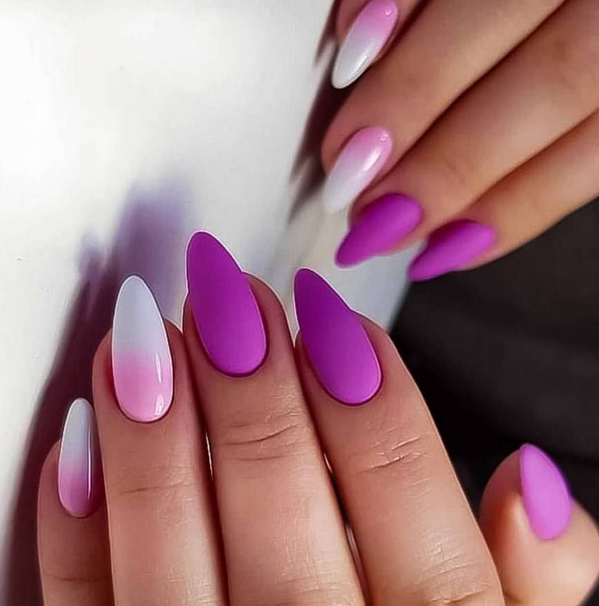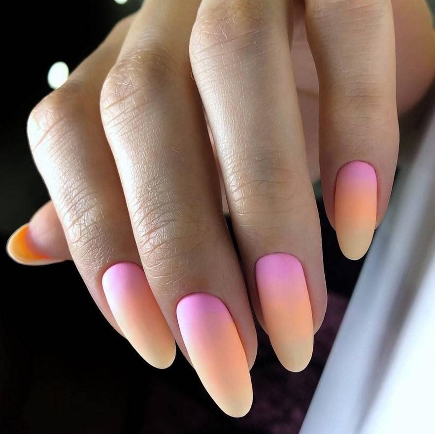 Мы привыкли, что градиент отлично смотрится на глянцевой поверхности. Но градиент может быть и матовым. Такая поверхность делает маникюр более стильным и необычным. Сделать его можно с помощью матового топа или простого пара в домашних условиях.