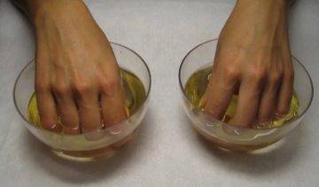 Второй вид ванночек для рук – это процедуры с использованием подогретого масла вместо воды. Они показаны при повышенной сухости кожи для питания и восстановления, а также при болях в суставах для более глубокого прогревания.