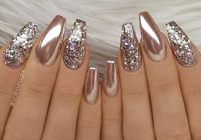 Одним из самых легких способов придать своему образу блеска — оформить ноготки глиттером.