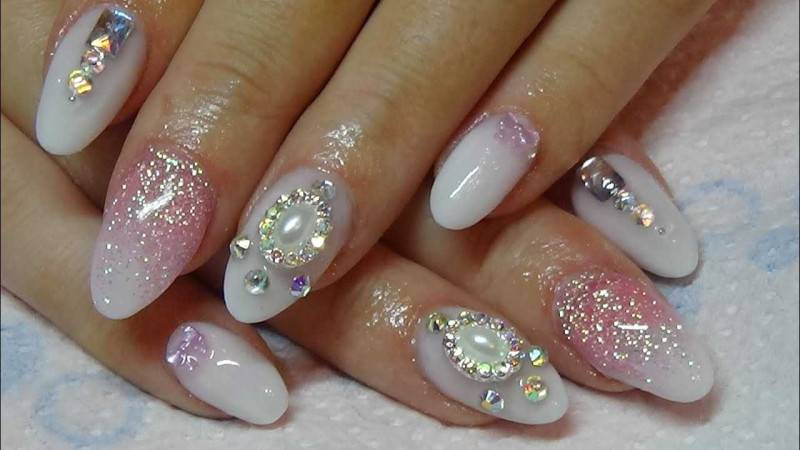 - Акриловый маникюр, биогель, как и наращивание, может украшаться лепкой, камнями, наклейками;