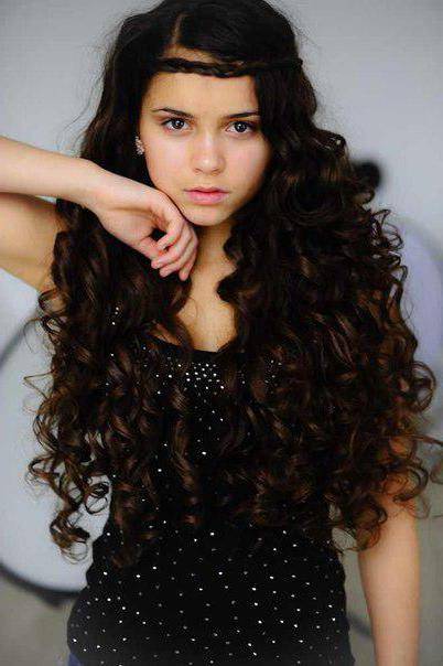 У девушки от природы шикарные густые темные волосы – каштанового оттенка. А также карие глаза.