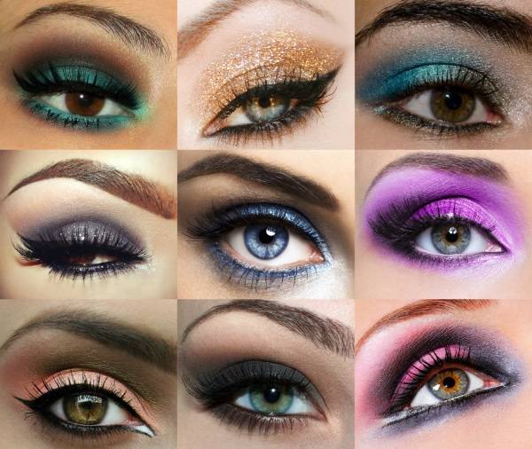 Зелёным глазам подойдут оттенки фиолетового, оранжевого, цвета с металлическим блеском. Голубоглазкам лучше отдать предпочтение абрикосовым тонам, бронзовым, золотистым, нежно-сиреневым.