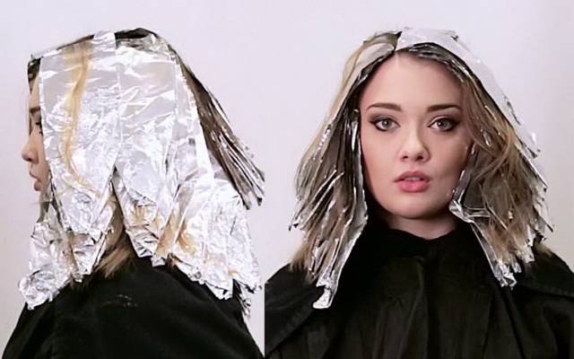 - Покрасив таким образом все пряди, оставьте их насыщаться кислородом. Помните, техника выполнения «венецианки» не предусматривает использование фольги, полиэтилена или специальной бумаги.
