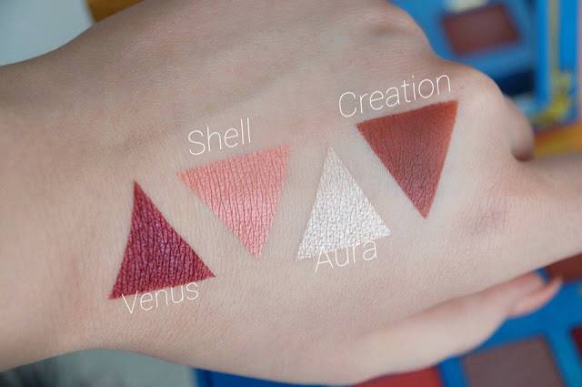 По сравнению с Venus, эта палетка имеет целых 16 оттенков теней, 8 из которых являются практически полной копией оттенков теней Venus от Lime Crime. Смотрите сами: