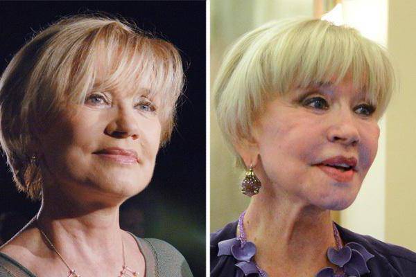Советская и российская актриса, народная артистка РФ сделала ряд неудачных операций. Сюда можно отнести – круговую подтяжку контура лица, ринопластику, инъекции ботокса.