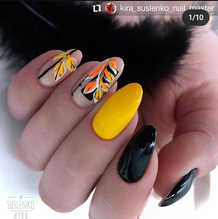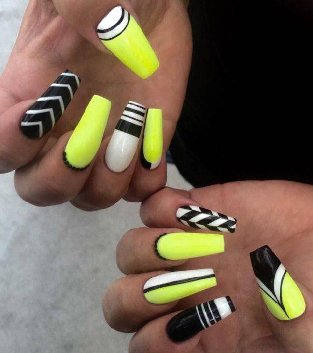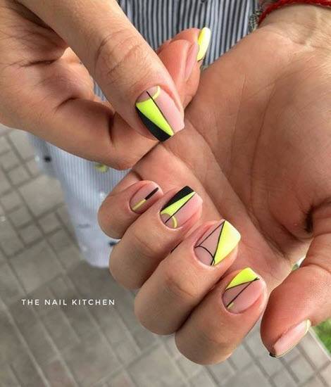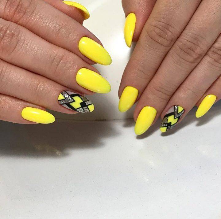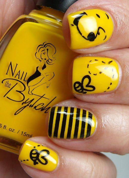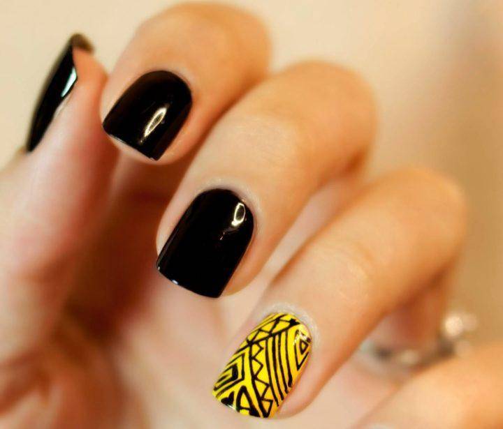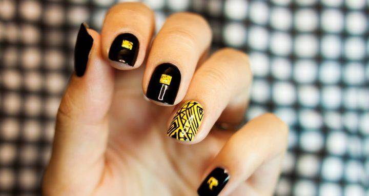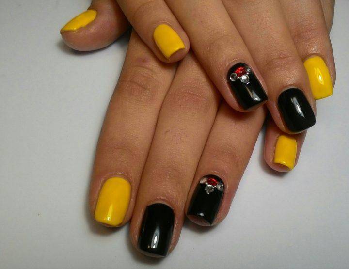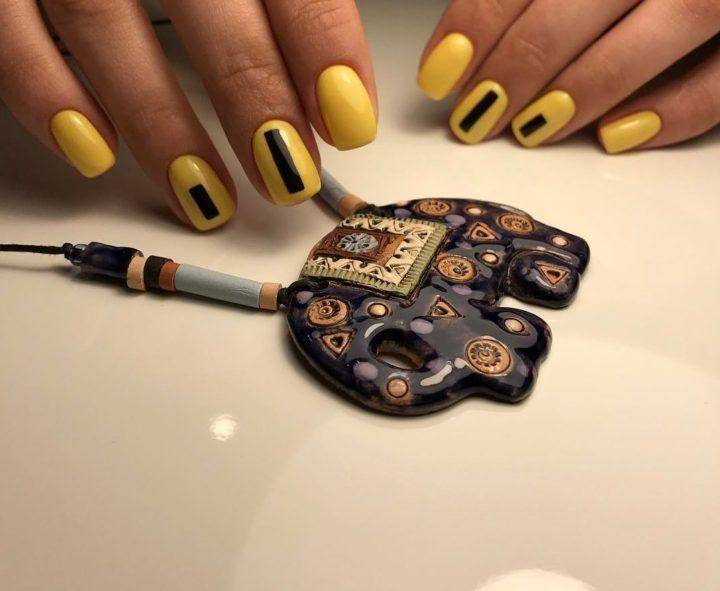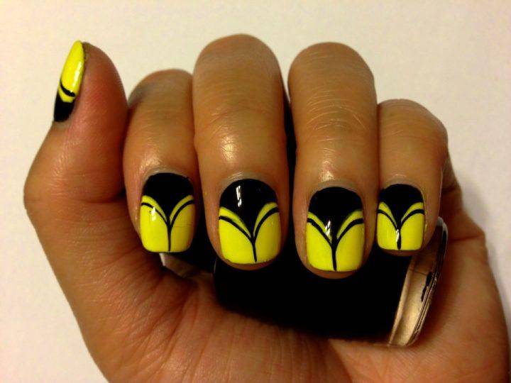 Благодаря такому нехитрому шагу, желто-черный маникюр становится еще более ослепительным чем он был раньше. А разнообразная комбинация желтого и черного цвета, позволяет чуть-ли не каждый час менять маникюр, каждый раз делая новый и еще более сложный вариант.